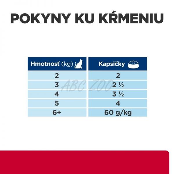 Kŕmte výlučne odporúčaným krmivom PRESCRIPTION DIET. Pred použitím požiadajte vášho veterinára o konkrétne pokyny na kŕmenie vášho domáceho zvieraťa. Kompletné pokyny na kŕmenie nájdete na obale. Odporúčania pre denné kŕmenie sú iba pomôckou a východiskovým bodom. Ak si nie ste istý(-á), poraďte sa s veterinárom. Po celý čas musí byť k dispozícii čerstvá voda.