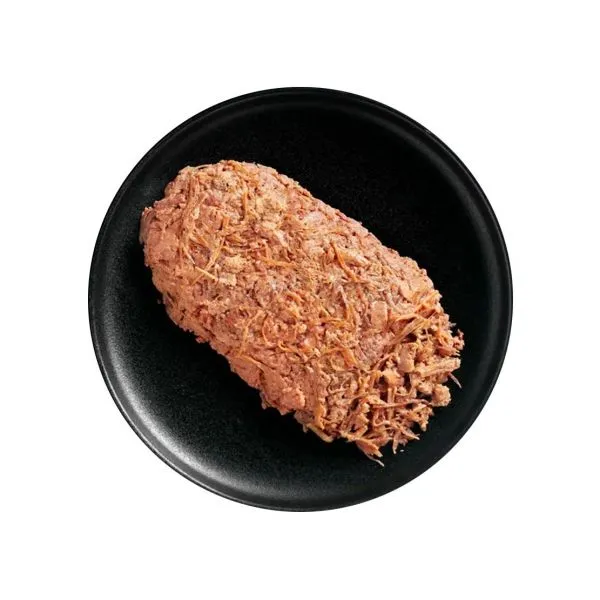 Zloženie: morčacie mäso, srdce, pečeň, žalúdok (34,5 %), mäsový vývar (34,3 %), trhané hovädzie mäso (14 %), kuracia pečeň (8,5 %), hovädzie pľúca (7,5 %), vaječné škrupiny, sušené (0,5 %), minerálne látky (0,5 %), lososový olej (0,2 %)