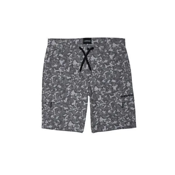 Šortky Shimano Cargo sú perfektné na letné nosenie pri vode. Štýlový šedý maskáčový dizajn v kombinácii s praktickými úložnými vreckami a elastickým pásom so sťahovacou šnúrkou robí z týchto kvalitných šortiek skvelý doplnok k celej letnej kolekcii oblečenia Shimano.