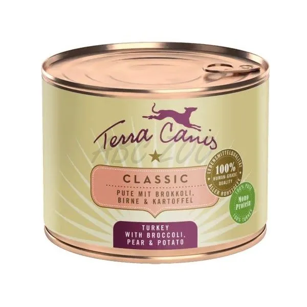 Terra Canis Classic je kompletné krmivo s morčacím mäsom, brokolicou, hruškou a zemiakom pre dospelých psov všetkých plemien.