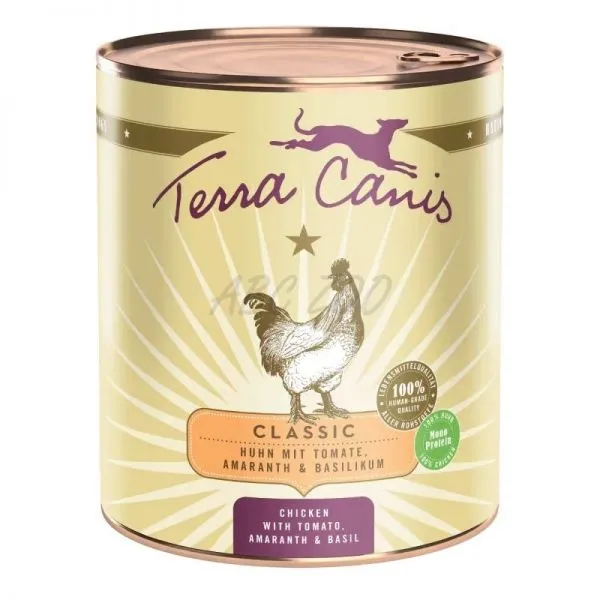 Konzervy Terra Canis z línie CLASSIC obsahujú vysoký podiel mäsa a čerstvej zeleniny, ovocia a byliniek. Na živiny bohaté, ľahké, bezlepkové pseudozrná (napr. proso, amarant, ryža natural) sú pridávané vo veľmi malých množstvách, ktoré sú pre psa ľahko stráviteľné (4 – 10 %). Prírodné prísady (morské riasy, minerálny íl, peľ kvetov, šípky, andská soľ, pivovarské kvasnice) dodávajú dôležité vitamíny, minerály a stopové prvky. Repkový olej poskytuje cenné esenciálne mastné kyseliny. Všetky zložky sú 100% ľudskej kvality.