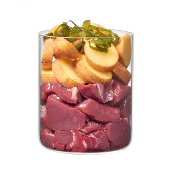Zloženie: Chudé antilopie mäso (60 %), zemiaky (36 %), repkový olej, morské riasy*, minerálne živiny