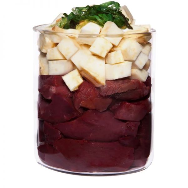 Zloženie: Kačacie srdce (50 %), kačacia svalovina (10 %), petržlenová vňať (36 %), repkový olej, morské riasy*, minerálne látky