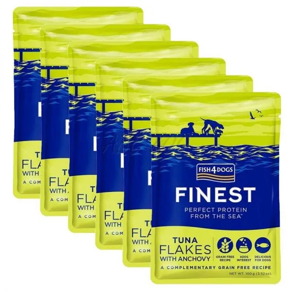 Fish4Dogs Finest Tuna Flakes with Anchovy je doplnkové krmivo pre dospelých psov, ktoré kombinuje chutné kúsky tuniaka a ančovičiek.