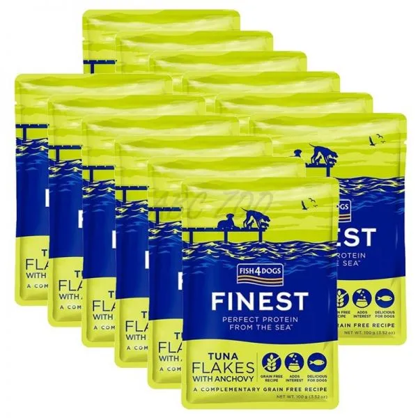Fish4Dogs Finest Tuna Flakes with Anchovy je doplnkové krmivo pre dospelých psov, ktoré kombinuje chutné kúsky tuniaka a ančovičiek.