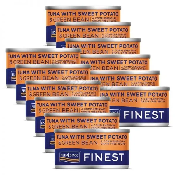 Fish4Dogs Finest Tuna with Sweet Potato je konzerva pre psov s tuniakom, sladkými zemiakmi a zelenými fazuľkami vyrobená z kvalitných rýb a zeleniny.