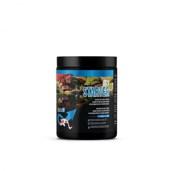 Umelo vytvorené jazierko je po napustení mestskou vodou sterilné, pretože mu chýbajú životne dôležité mikroorganizmy. Dry Starter obsahuje dôležité baktérie (Nitrosomonas a Nitrobacter) v koncentrovanej forme. Štartovacie bakérie pracujú okamžite po ich nasadení. Urýchľujú procesy rozkladania biologických usadenín a priaznivo vplývajú na celú rovnováhu jazierka. Sú neodmysliteľnou súčasťou, každej vačšej údržby a jarného štartu jazierka.