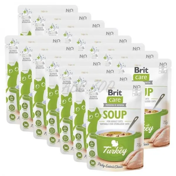 Brit Care Cat Soup with Turkey je polievka pre dospelé aj kastrované mačky všetkých plemien, bez umelých aróm a konzervantov.