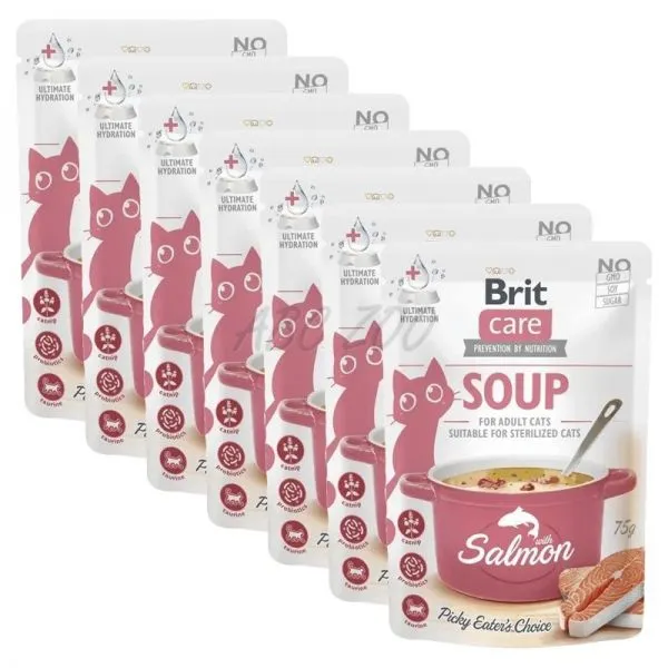 Brit Care Cat Soup with Salmon je polievka pre dospelé aj kastrované mačky všetkých plemien, bez umelých aróm a konzervantov.
