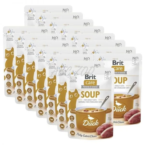 Brit Care Cat Soup with Duck je polievka pre dospelé aj kastrované mačky všetkých plemien, bez umelých aróm a konzervantov.