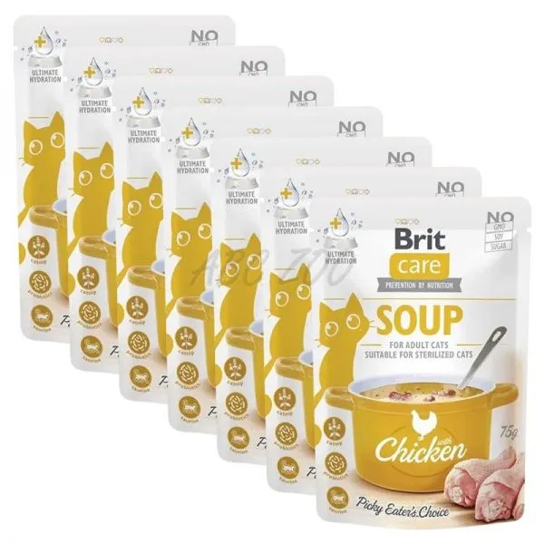Brit Care Cat Soup with Chicken je polievka pre dospelé aj kastrované mačky všetkých plemien, bez umelých aróm a konzervantov.