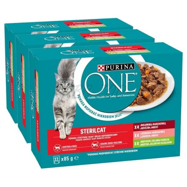 Purina ONE Sterilised kapsičky pre mačky hovädzie, losos, morka v šťave 36x85 g