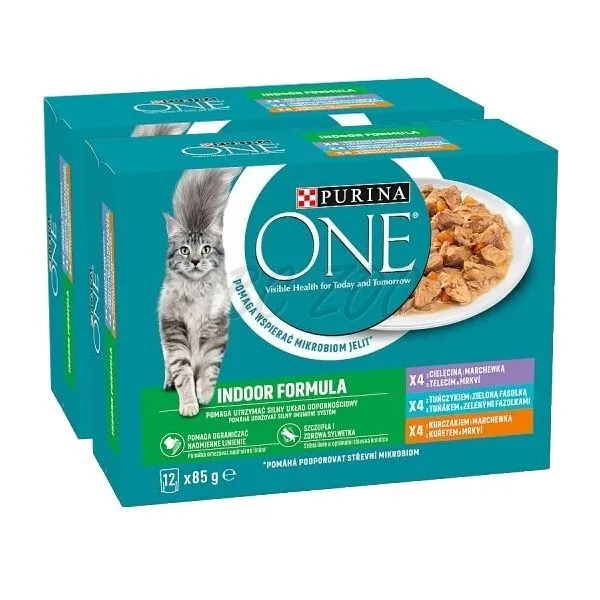 *(PURINA ONE INDOOR)* s teľacím, tuniakom a kuracím v šťave 12 x 85 g