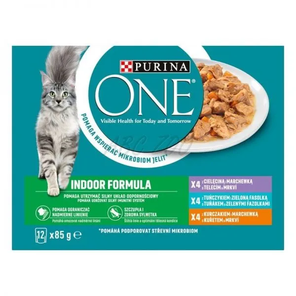 *(PURINA ONE INDOOR)* s teľacím, tuniakom a kuracím v šťave 12 x 85 g