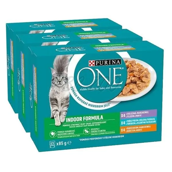 Purina ONE Indoor kapsičky pre mačky kura, tuniak, teľacie v šťave 36x85 g