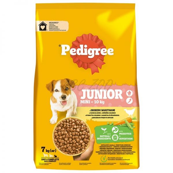 Pedigree Junior Mini s hydinou a zeleninou je kompletné suché krmivo špeciálne vyvinuté pre šteňatá malých plemien.