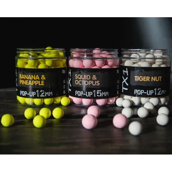 TX1 Pop-up sú ideálnou nástrahou na háčik pri použití s TX1 boilies, ak chcete dosiahnuť nadľahčenú alebo jemne vyváženú prezentáciu. S radom príchutí, ktoré dopĺňajú sériu TX1 Boilies, sú tieto vizuálne výrazné nástrahy účinné aj ako samostatné nástrahy na háčik alebo pri použití so zig rig montážami.