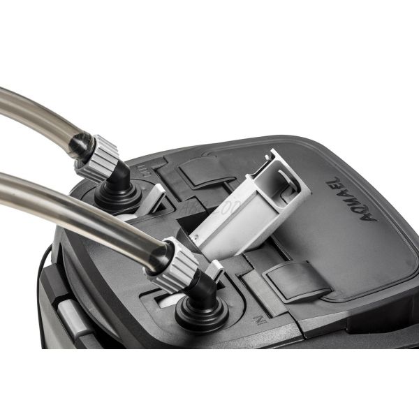 Ovládanie výkonu filtra je mimoriadne jednoduché a intuitívne. Vykonáva sa otáčaním malej páčky na pravom ventile. Je pohodlná na používanie a prehľadne označená, vďaka čomu je nastavenie výkonu pre akvaristov jednoduché, aj keď to robia prvýkrát.