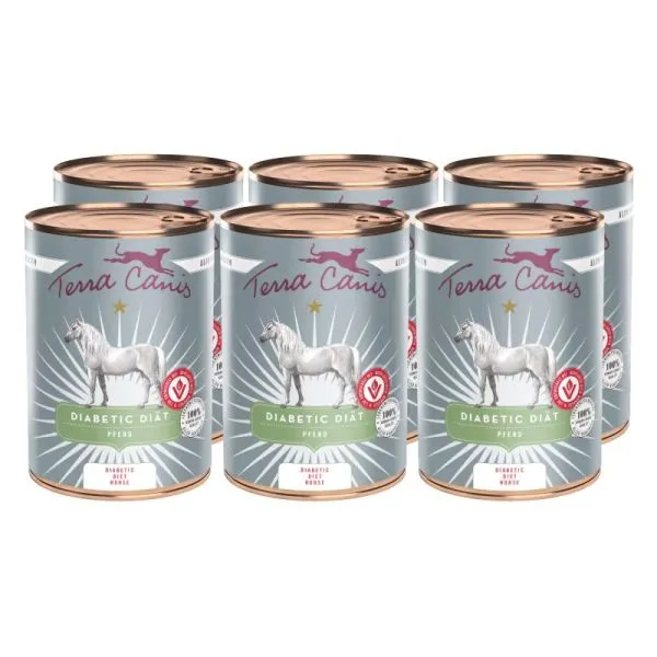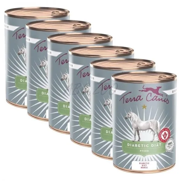 Terra Canis Diabetic je kompletné diétne krmivo regulujúce prísun glukózy s konským mäsom pre dospelých psov s cukrovkou.