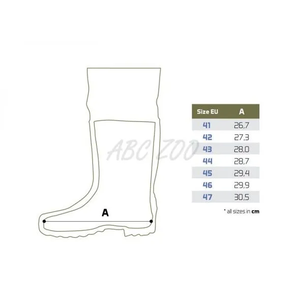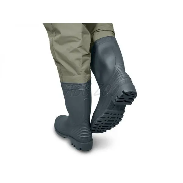 Samozrejmosť je úplná vodeodolnosť a vysoká životnosť materiálu. Vyberateľný opasok umožňuje prispôsobiť šírku pásu nohavíc postave rybára. Gumené čižmy s odolnou a stabilnou podrážkou poskytujú skvelú oporu aj v náročných podmienkach. Výčnelky v oblasti päty uľahčujú vyzúvanie.