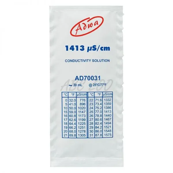 Profesionálny kalibračný roztok k EC Controlleru a EC testerom - referenčný roztok 1413µS - 20ml sáčok. Ideálny pre okamžité použitie pri kalibrácii merania vodivosti - presné jednorázové použitie. Výhoda vákuového balenia - máte vždy poruke presný čerstvý roztok pre kalibráciu.