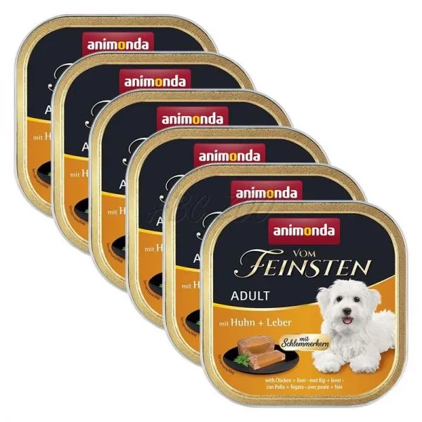 Animonda Vom Feinsten je vanička s kuracím mäsom a pečeňou v omáčke, pre dospelé psy (1-6 rokov) všetkých plemien.
