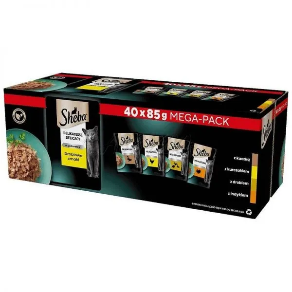 Sheba Delicacy je hydinový výber kapsičiek v želé pre dospelé mačky.