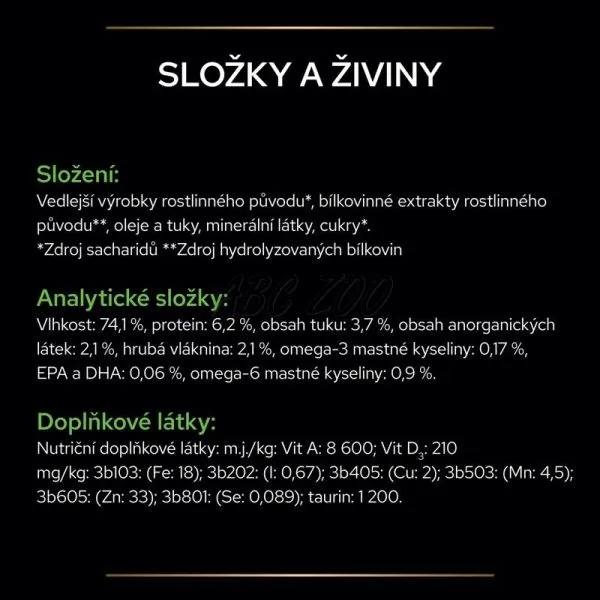 Zloženie: Vedľajšie produkty rastlinného pôvodu*, Rastlinné bielkovinové koncentráty**, Oleje a tuky, Minerálne látky, Cukry*