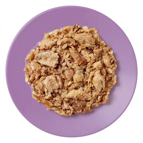 Zloženie: Makrela 50 %, sardinka 25 %, rybí vývar, ryža