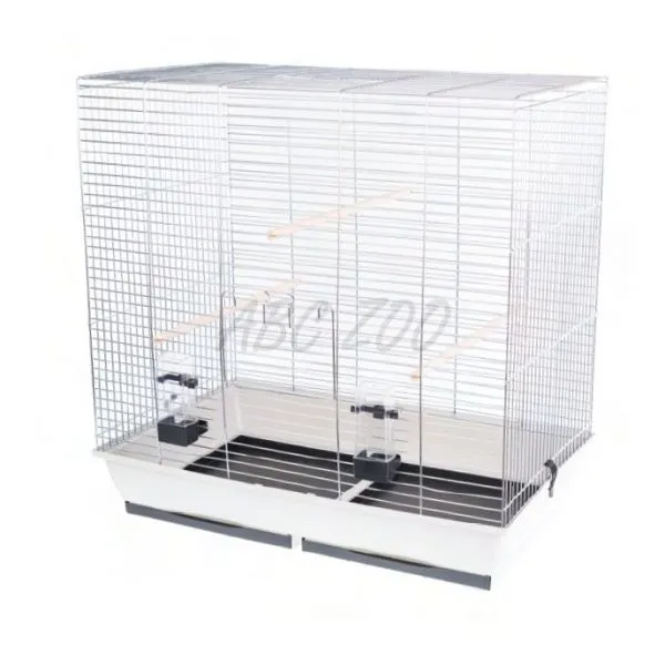 Veľká klietka pre stredné a veľké papagáje. Svetlo šedá farba vaničky. Viac detailov