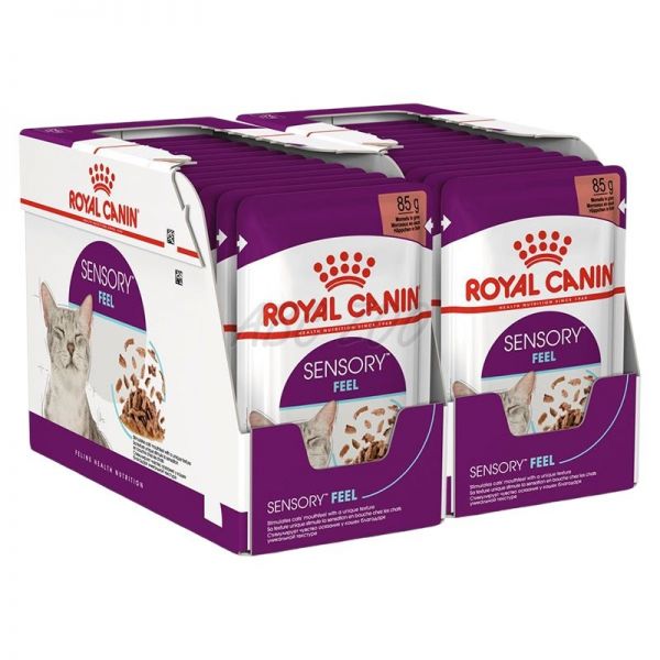 Pohoda vašej mačky sa zlepší, keď je jej strava nielen výživná, ale aj zmyslovo pestrá. Royal Canin® Sensory Feel je vysoko atraktívna receptúra s jedinečnou textúrou navrhnutá tak, aby stimulovala jemné zmysly vašej mačky prostredníctvom pocitu v ústach (pocit, ktorý jedlo stimuluje).