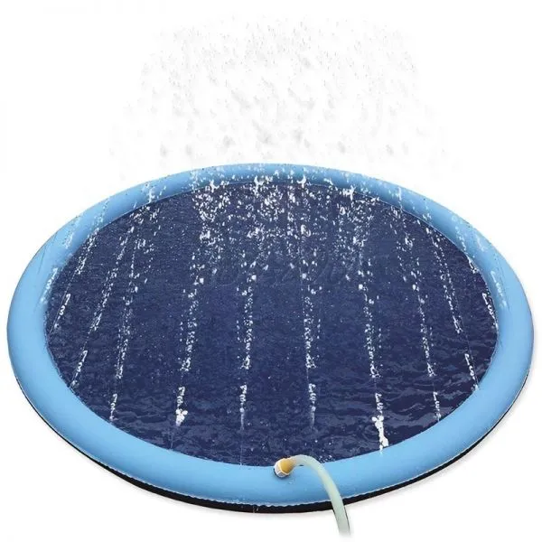 Zábavný plytký bazénik s vodnými tryskami pre psov, ideálny na letné osvieženie a aktívnu hru na záhrade či terase.