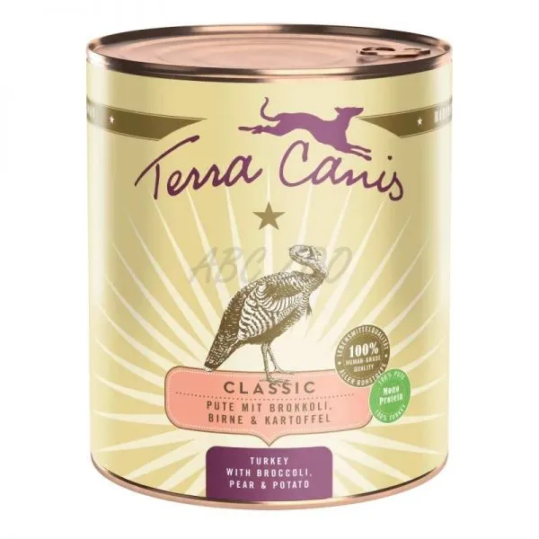 Terra Canis Classic je kompletné krmivo s morčacím mäsom, brokolicou, hruškou a zemiakom pre dospelých psov všetkých plemien.