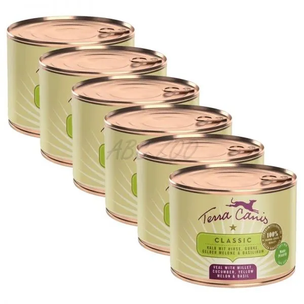 Konzervy Terra Canis z línie CLASSIC obsahujú vysoký podiel mäsa a čerstvej zeleniny, ovocia a byliniek. Na živiny bohaté, ľahké, bezlepkové pseudozrná (napr. proso, amarant, ryža natural) sú pridávané vo veľmi malých množstvách, ktoré sú pre psa ľahko stráviteľné (4 – 10 %). Prírodné prísady (morské riasy, minerálny íl, peľ kvetov, šípky, andská soľ, pivovarské kvasnice) dodávajú dôležité vitamíny, minerály a stopové prvky. Repkový olej poskytuje cenné esenciálne mastné kyseliny. Všetky zložky sú 100% ľudskej kvality.