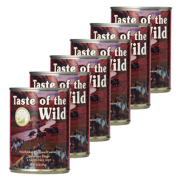 TASTE OF THE WILD Southwest Canyon Canine je kompletné konzervované  krmivo určené pre všetky plemená psov, všetkých vekových kategórií. Krmivá tejto značky sú ocenené najvyšším možným hodnotením kvality organizácie Dog Food Analysis.