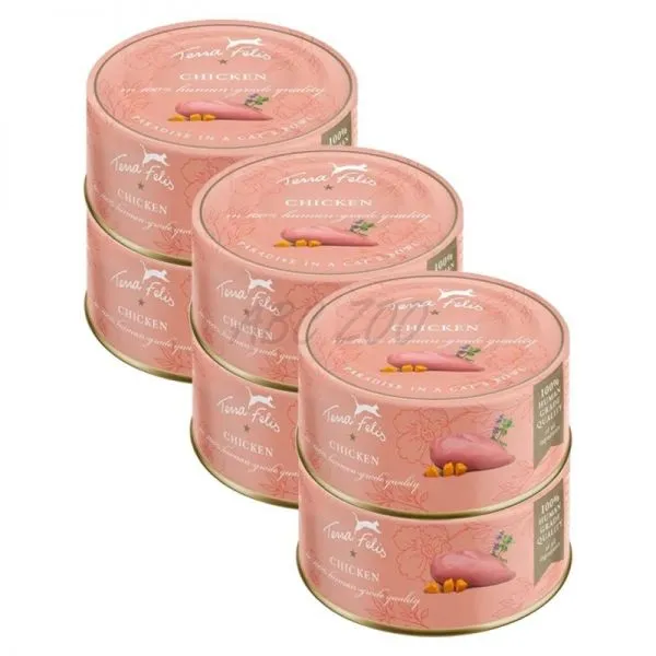 Krmivá Terra Felis bez obilnín obsahujú 90 % čerstvej svaloviny a hodnotné vnútornosti, a preto majú vysoký obsah mäsa, ktorý vyhovuje potrebám mačiek, ktoré sú skutočnými mäsožravcami. Na podporu zdravého trávenia obsahujú malé množstvo vlákniny z vybranej zeleniny. Obohatené aj o taurín a repkový olej, ktorý je bohatý na omega-3 mastné kyseliny.