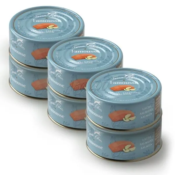 Zloženie: Losos 54 %, vývar 38 %, cuketa 3 %, glycín 2 %, ustricové lastúry 1 %*, paradajkový prášok*, špenát*, taurín, pivovarské kvasnice*, minerály*