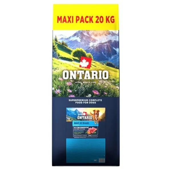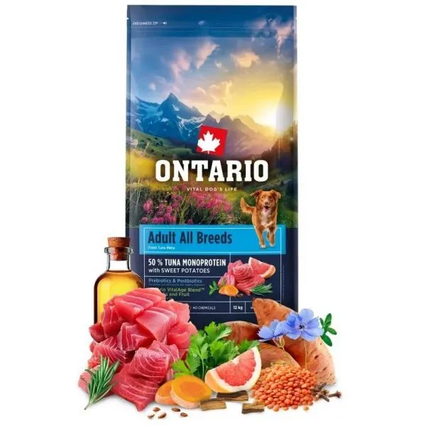 Ontario Adult All Breeds je superprémiové krmivo s tuniakom a sladkými zemiakmi pre dospelé psy všetkých plemien na podporu vitality a zdravého trávenia.