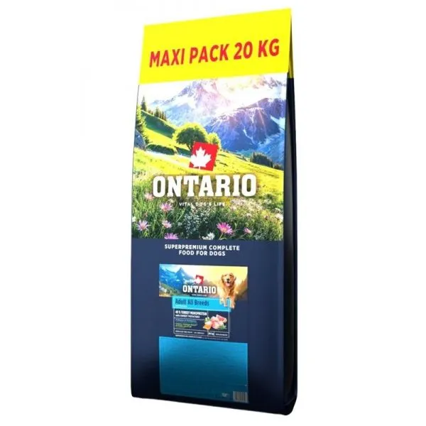 Ontario Adult All Breeds je superprémiové krmivo s morčacím mäsom a sladkými zemiakmi pre dospelé psy všetkých plemien na podporu vitality a zdravého trávenia.