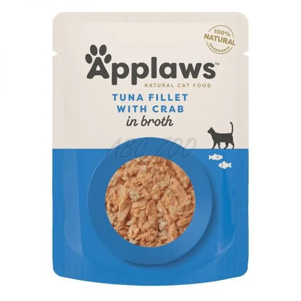 Applaws Tuna Fillet with Crab in Broth je prémiové prírodné krmivo v kapsičke pre mačky, vyrobené z vysokokvalitného mäsa z tuniaka a kraba v lahodnom vývare.