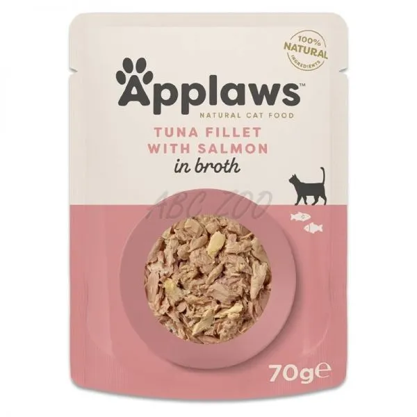 Applaws Tuna Fillet with Salmon in Broth je prémiové prírodné krmivo v kapsičke pre mačky, vyrobené z vysokokvalitného mäsa z tuniaka a lososa v lahodnom vývare.
