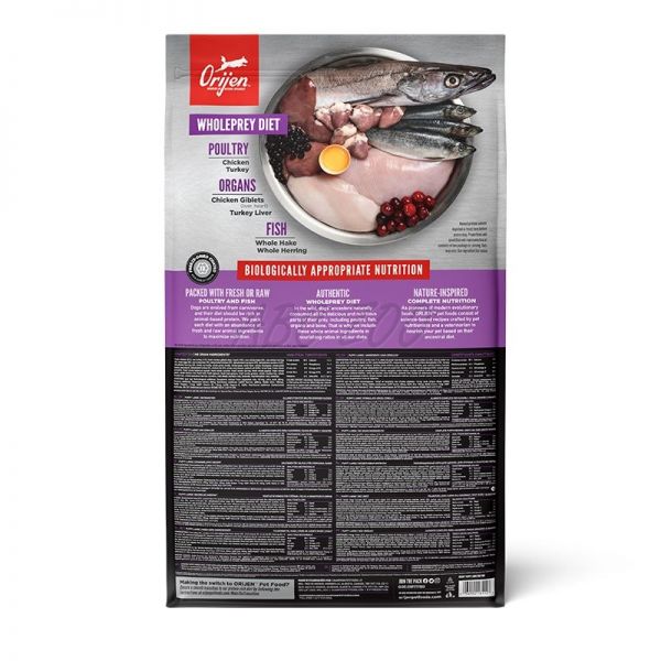 Psy ako mäsožravce sú prispôsobené strave, ktorá je založená na bohatom a rozmanitom obsahu celého čerstvého mäsa, s menším množstvom ovocia, bobuľovín a tráv. Krmivo Orijen ponúka všetky výhody surovej stravy, tak ako by ju Vášmu psovi ponúkla sama príroda. Je šetrne sušené mrazom pre uchovávanie prirodzenej chuti čerstvých miestnych surovín.