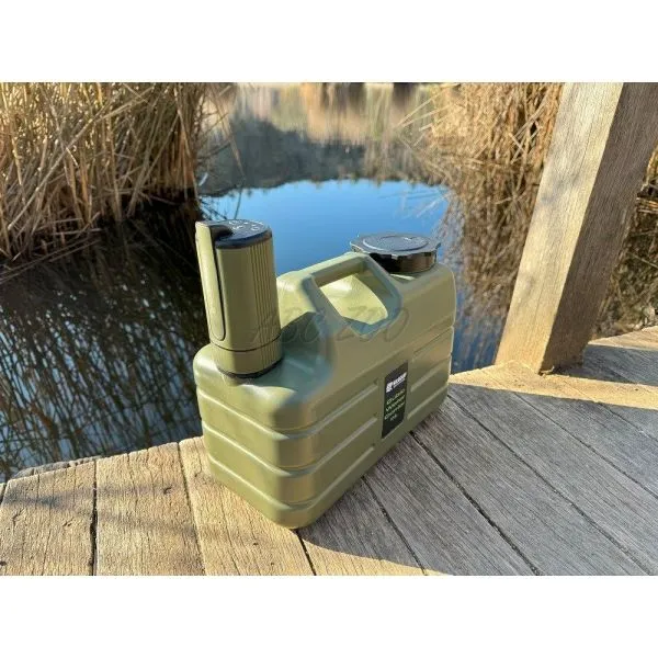 Súčasťou setu je aj 11-litrový plastový kanister s dvoma otvormi. Obsahuje flexibilný náustok na jednoduché nalievanie a prídavné viečko, ktoré umožňuje reguláciu prietoku vody. Kanister je 100 % kompatibilný s pumpou Holdcarp Smart Rechargeable Tap, čo zaručuje bezproblémovú integráciu a funkčnosť.