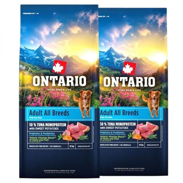 Ontario Adult All Breeds Monoprotein Tuna & Sweet Potatoes 2 x 12 kg