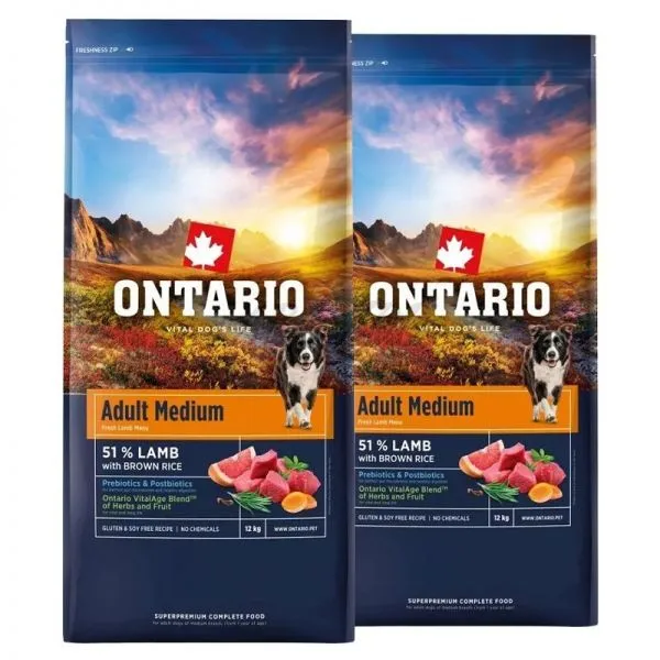 Ontario Adult Medium Lamb & Brown Rice 2 x 12 kg