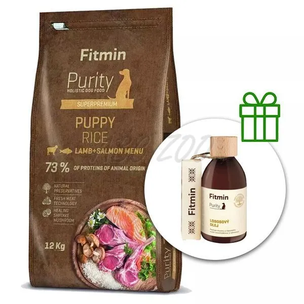 Fitmin Purity Puppy Rice Lamb & Salmon 12 kg + Fitmin Purity Lososový olej ZADARMO