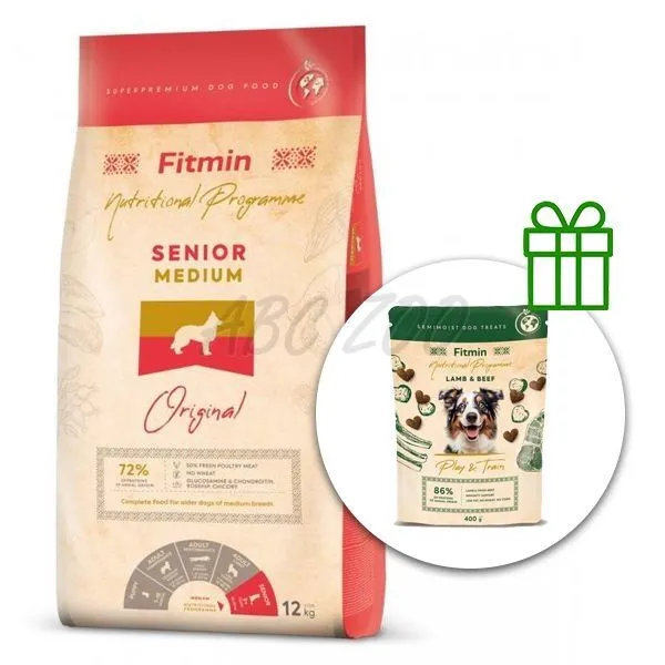 Fitmin MEDIUM Senior 12 kg + Fitmin Play&Train Lamb & Beef ZADARMO