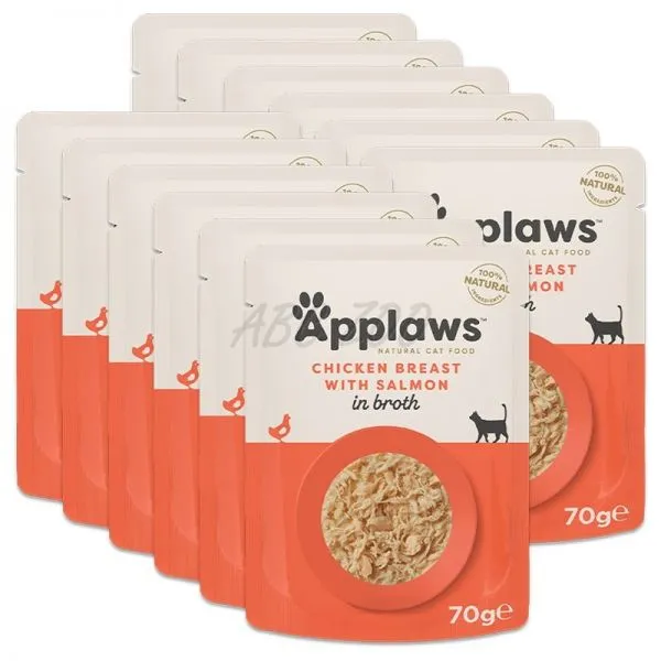 Applaws Kapsička pre mačky s kuracími prsiami a lososom vo vývare 12 x 70 g