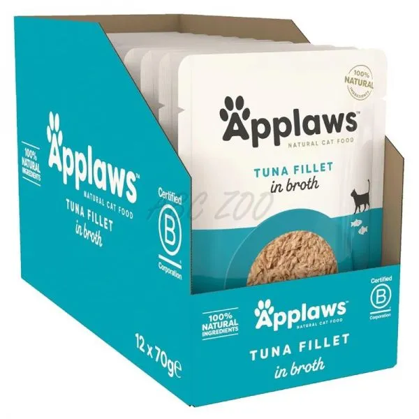 Applaws Tuna Fillet in Broth je prémiové prírodné krmivo v kapsičke pre mačky, vyrobené z vysokokvalitného mäsa z tuniaka v lahodnom vývare.