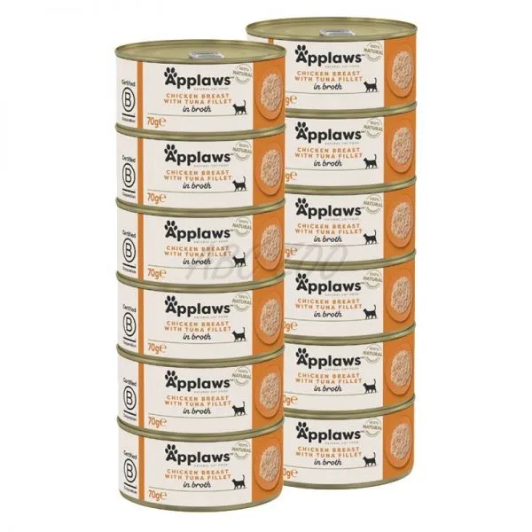 Applaws Konzerva pre mačky s kuracími prsiami a tuniakom vo vývare 12 x 70 g